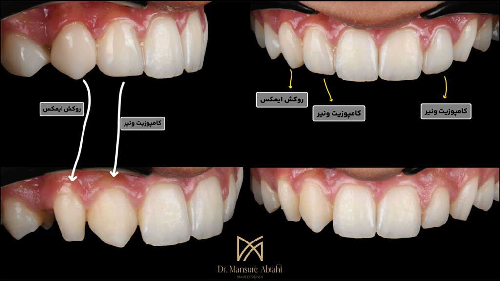 3. ونیر کامپوزیت دندان ۳ سمت راست و تبدیل ظاهر آن به دندان ۲