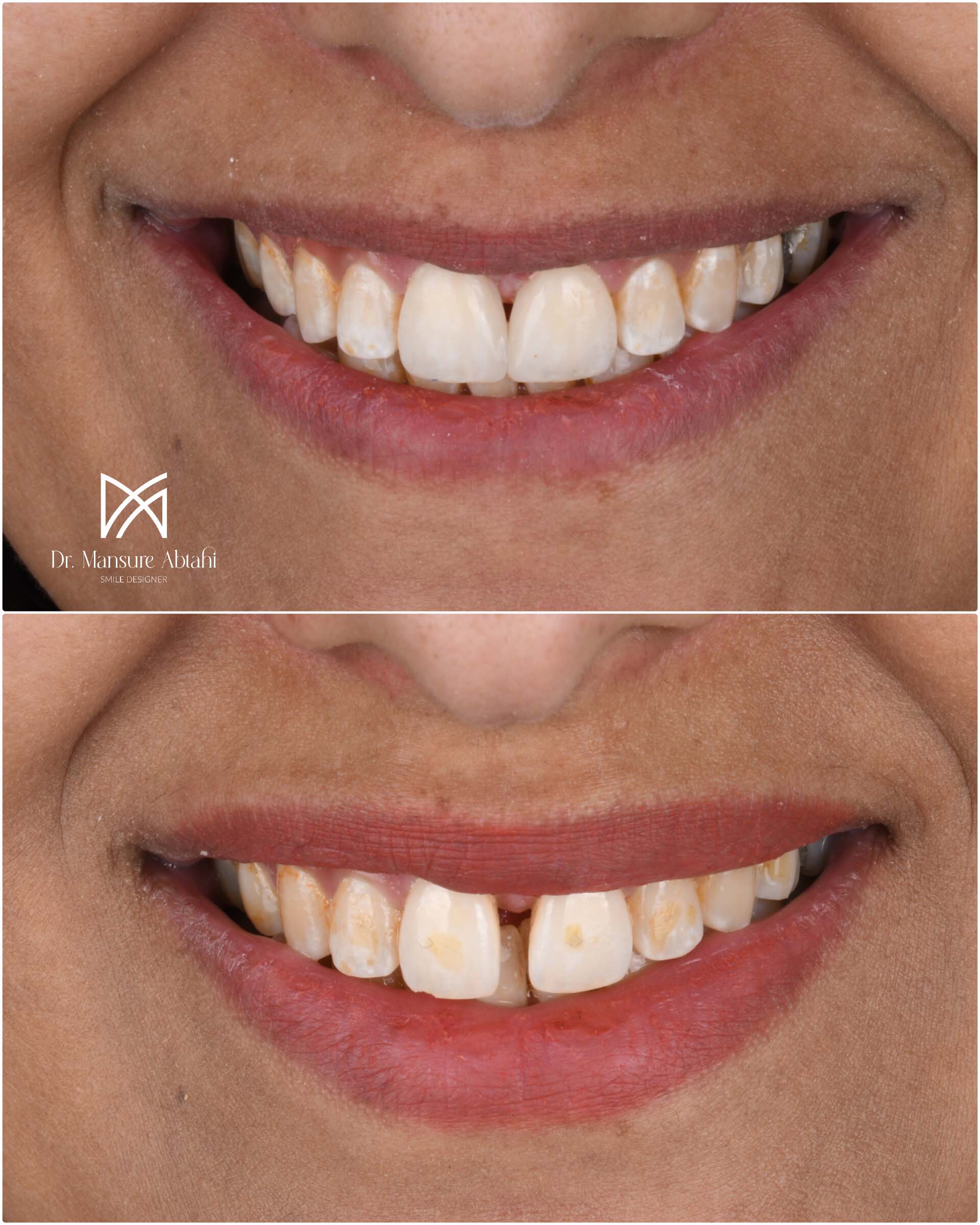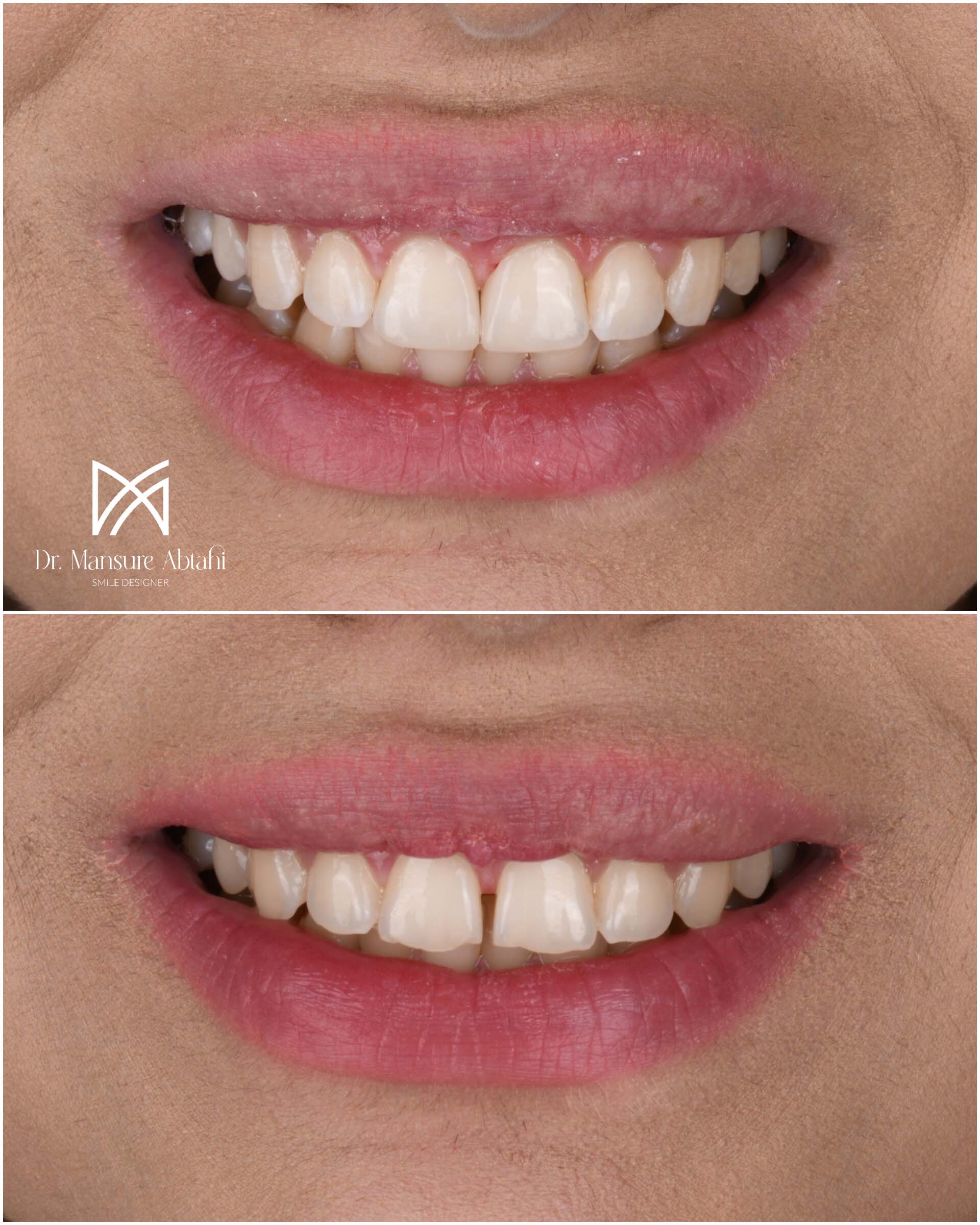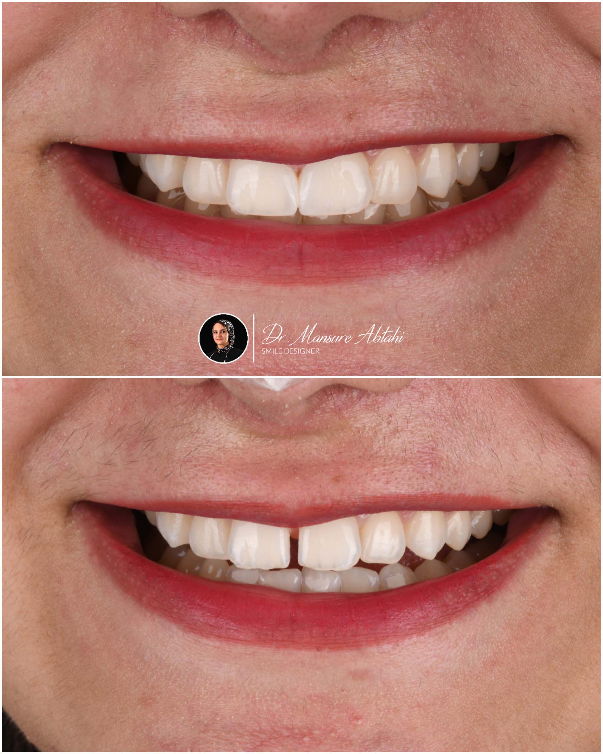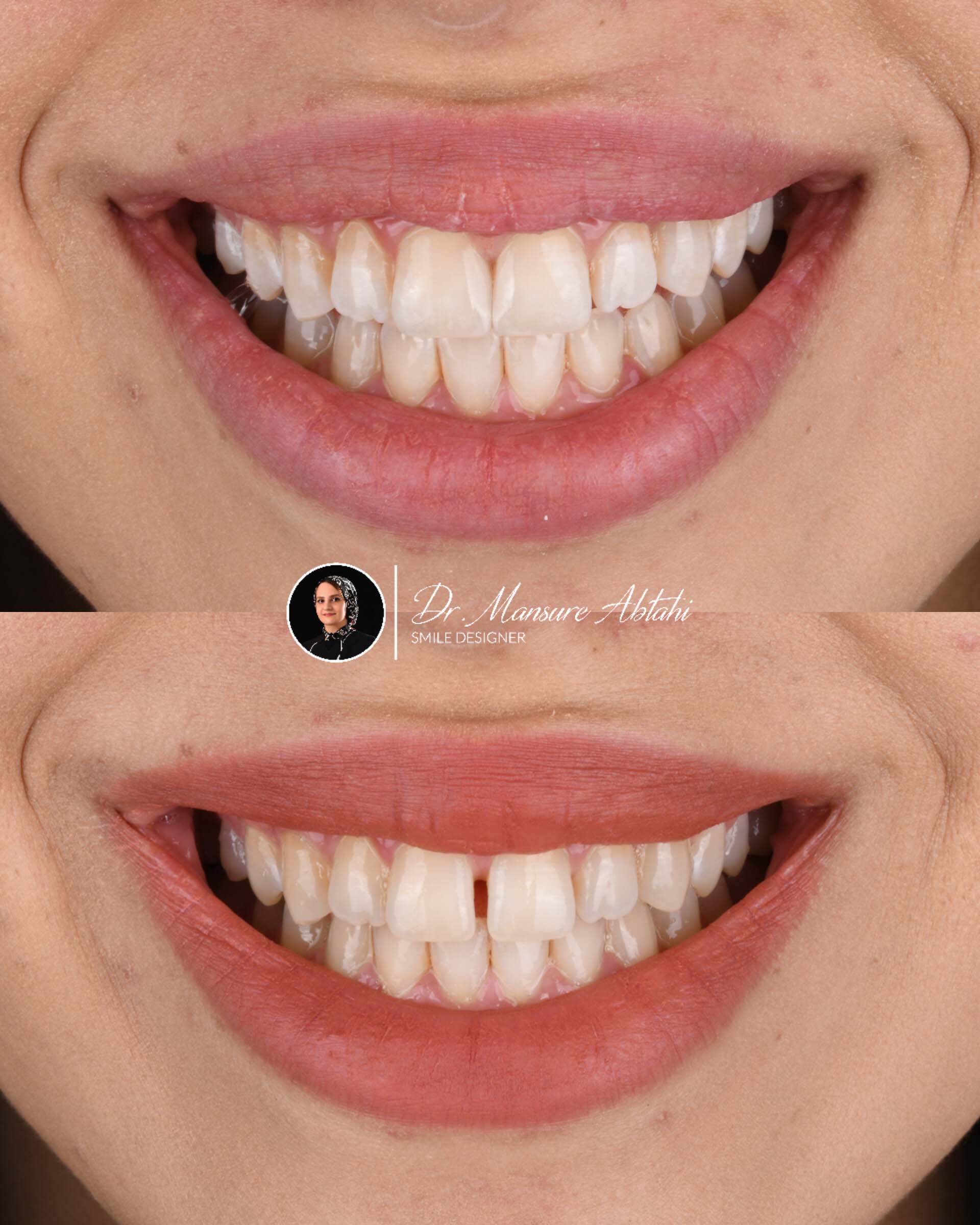 در این بیمار عزیز فواصل بین دندانی با طبیعی ترین شکل ممکن با کامپوزیت ونیر بسته شدند.
